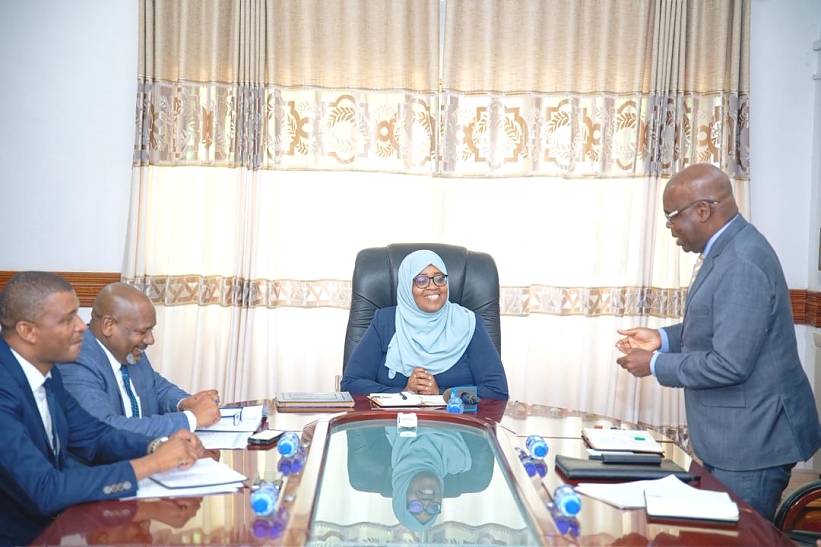 Kurugenzi ya Diaspora ya Serikali ya Muungano Tanzania wakizungumza na Waziri wa Nchi Afisi ya Rais Ikulu Zanzibar Dkt. Saada Mkuya Salum kwa ajili ya mazungumzo na Idara ya Diaspora Zanzibar